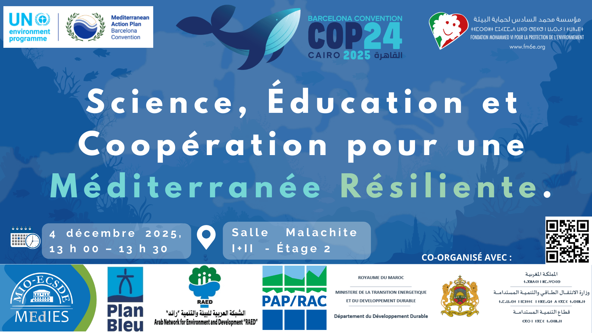 En marge de la 24ᵉ Réunion des Parties à la Convention de Barcelone, qui se tient au Caire le 4 décembre 2025 (13:00–13:30, Malachite I+II,...